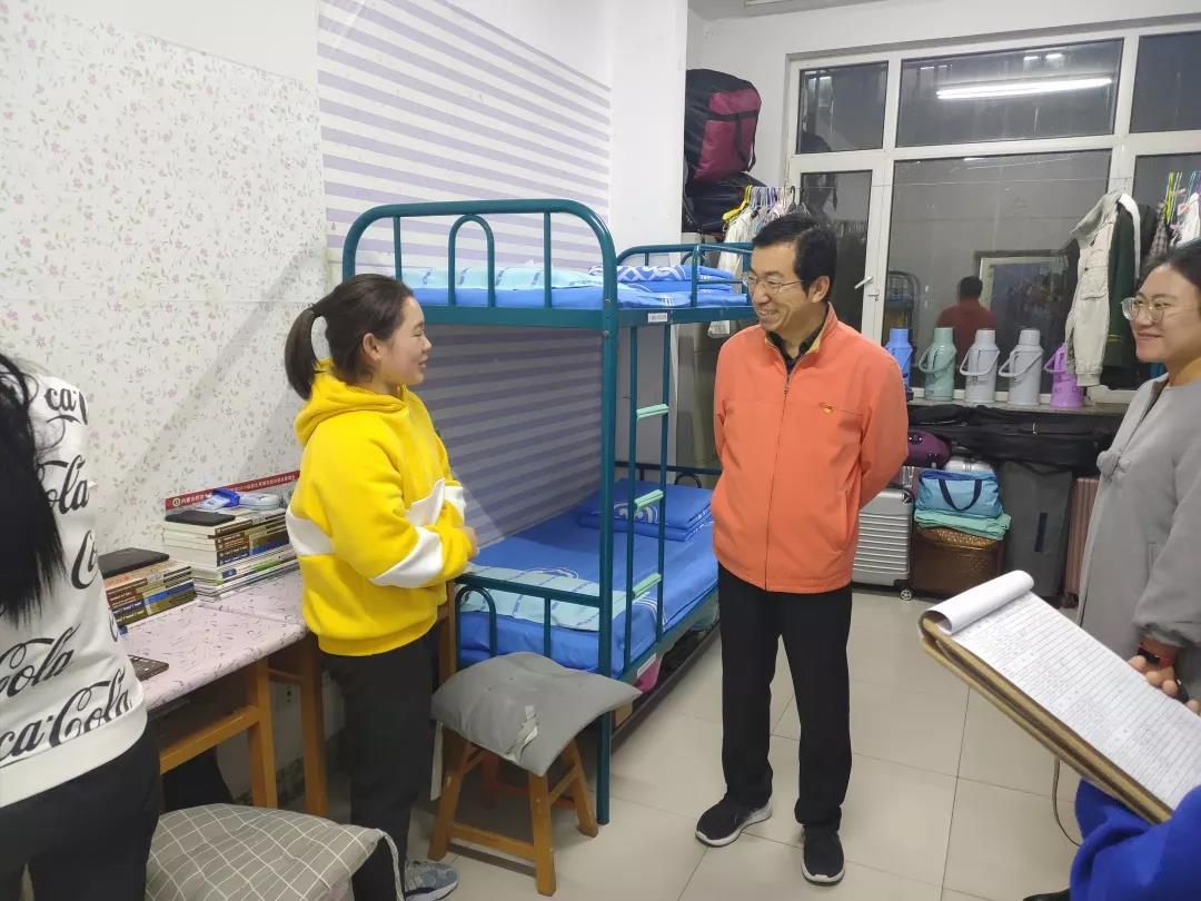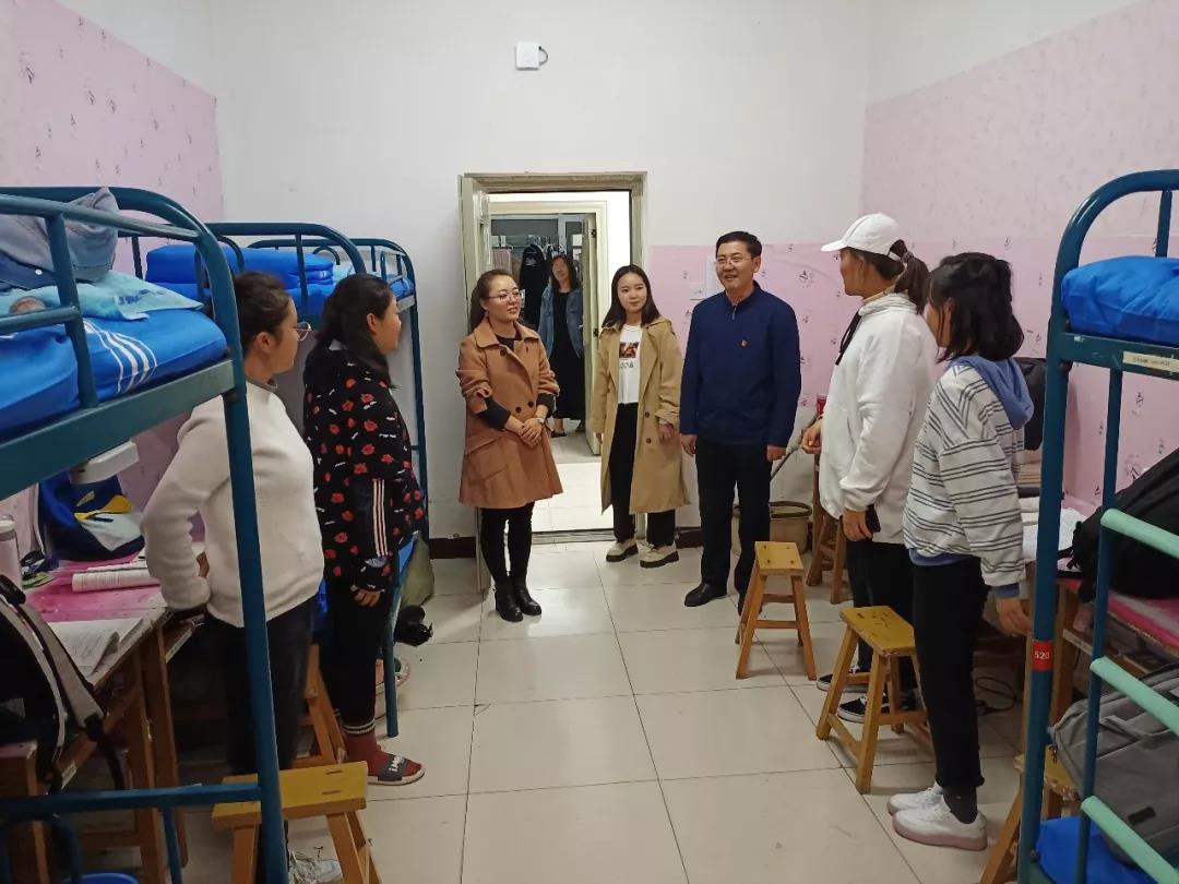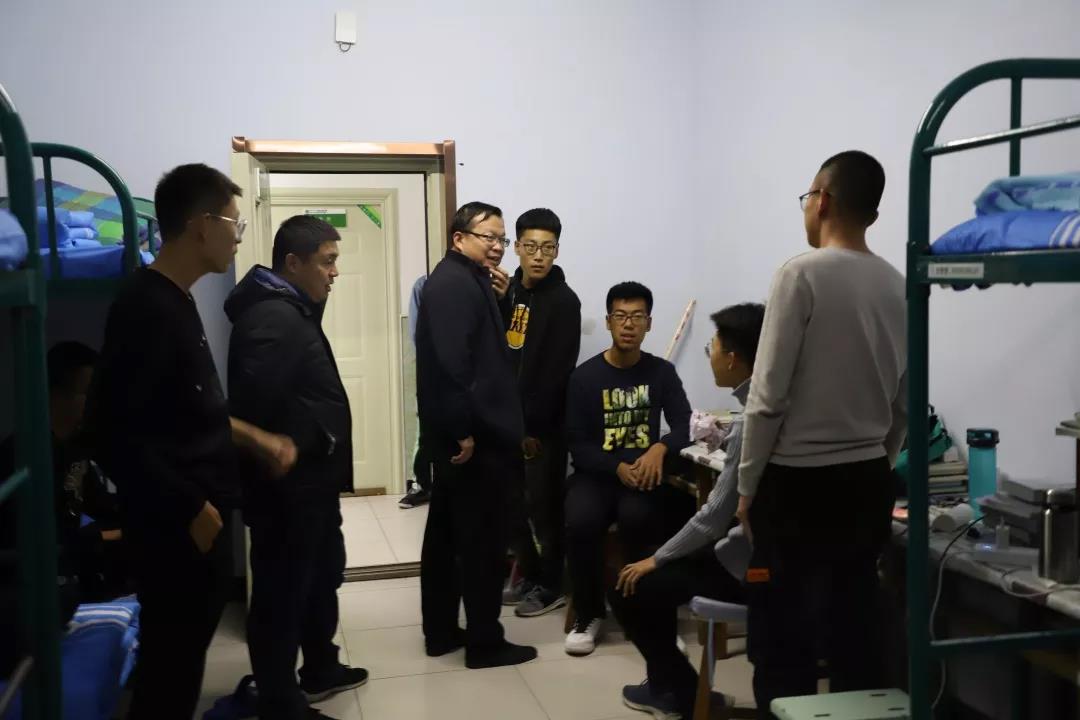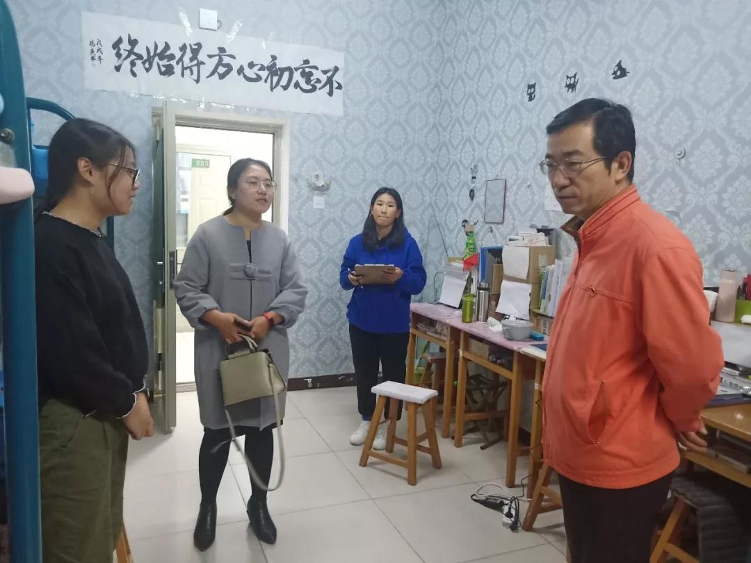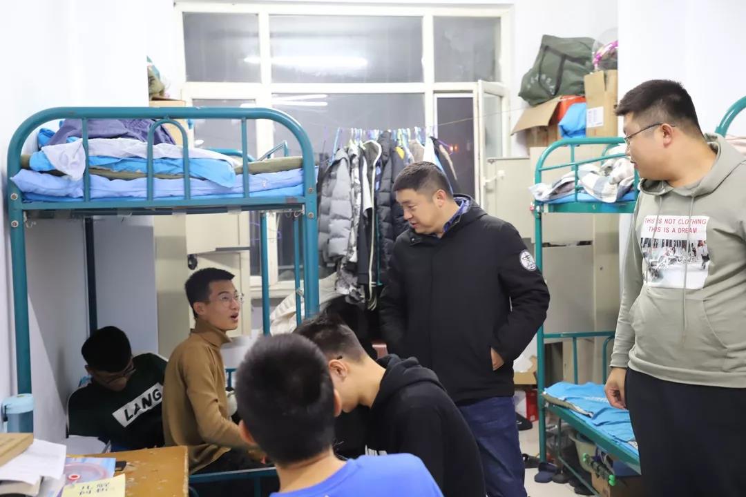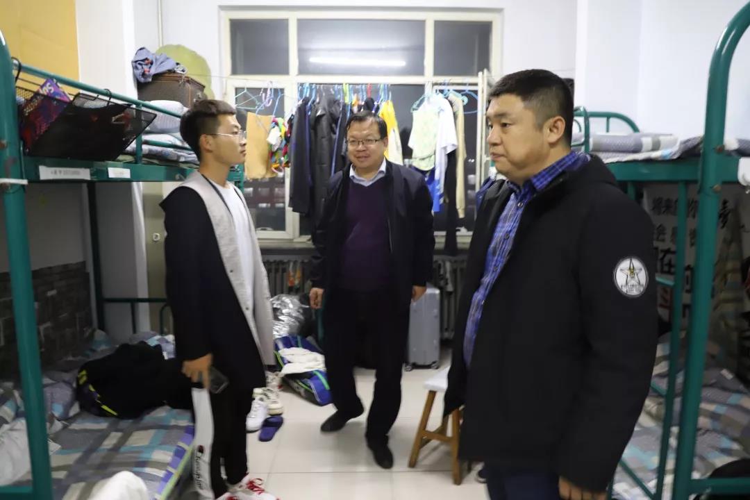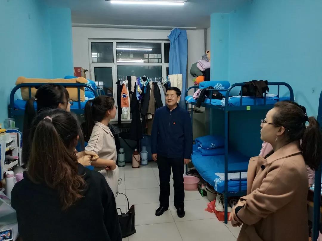 2019年11月4日,太阳成集团tyc122ccvip党总支书记扎其劳老师、院长刘官厅老师、党总支副书记、副院长季建光老师、副院长包霞老师、副院长李联合老师、学生辅导员李帅老师、刘沙沙老师来到学生宿舍进行安全卫生检查,亲切询问同学们生活、学习等情况。