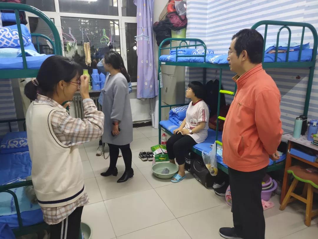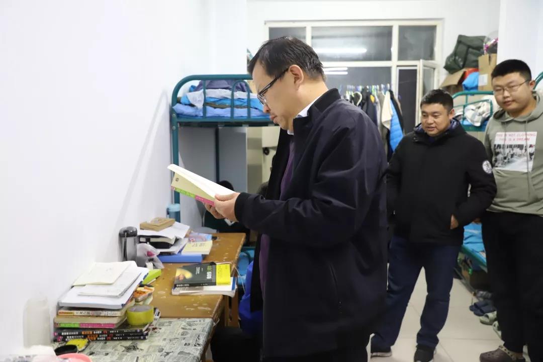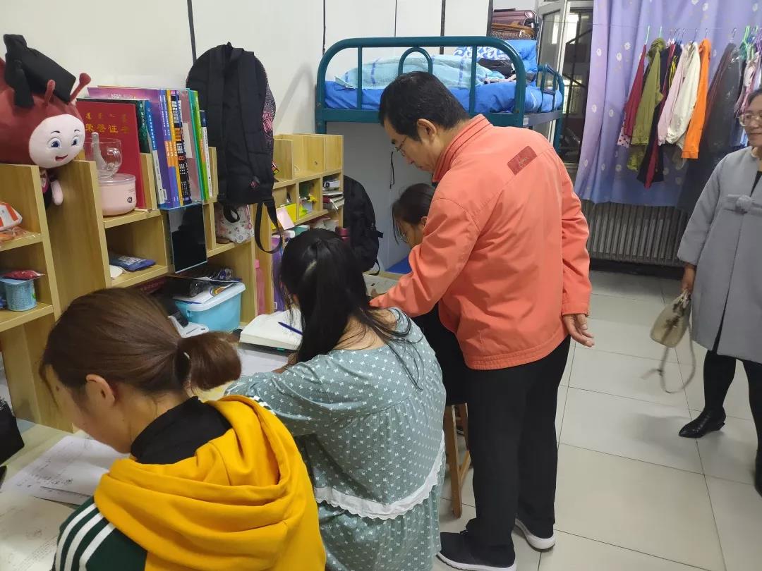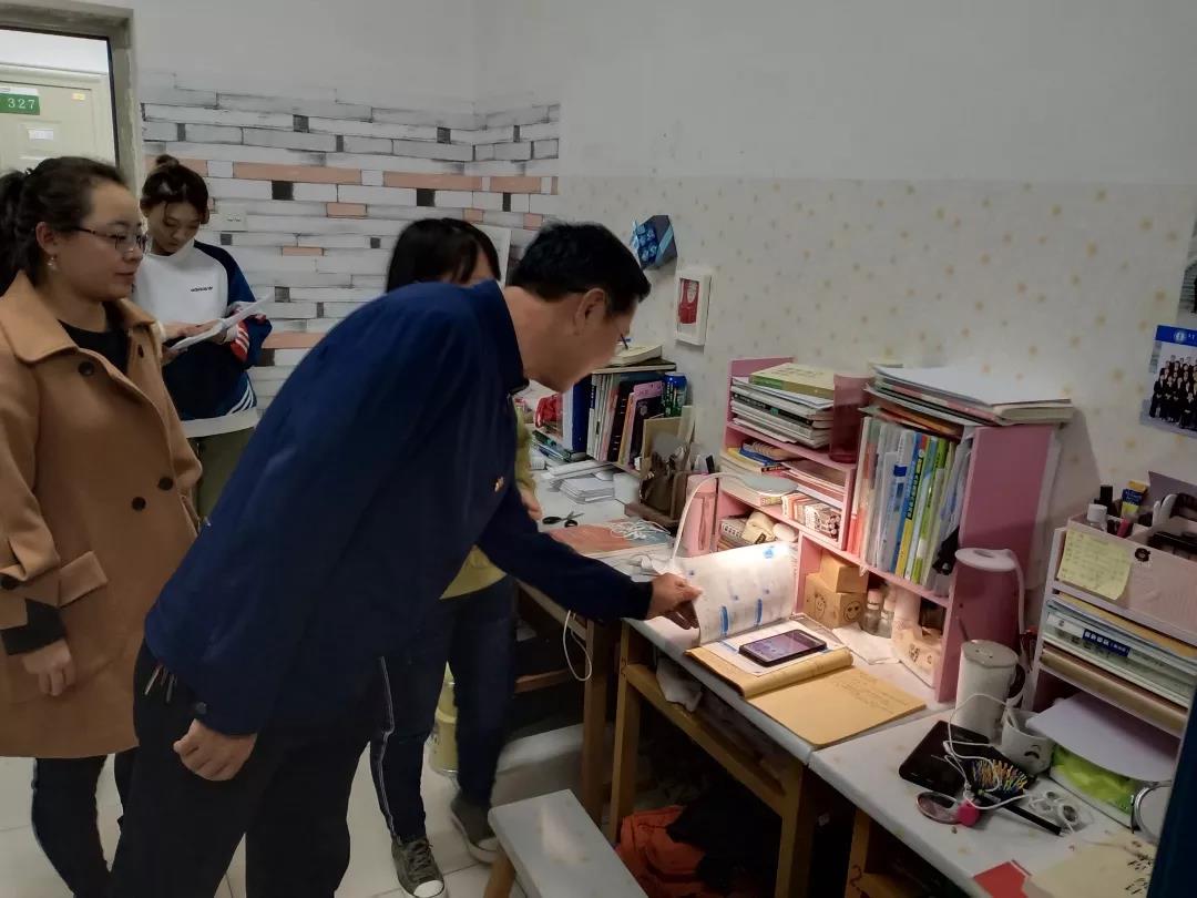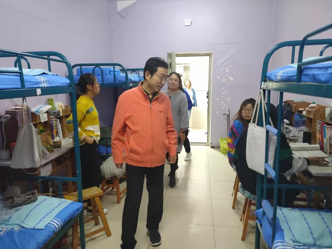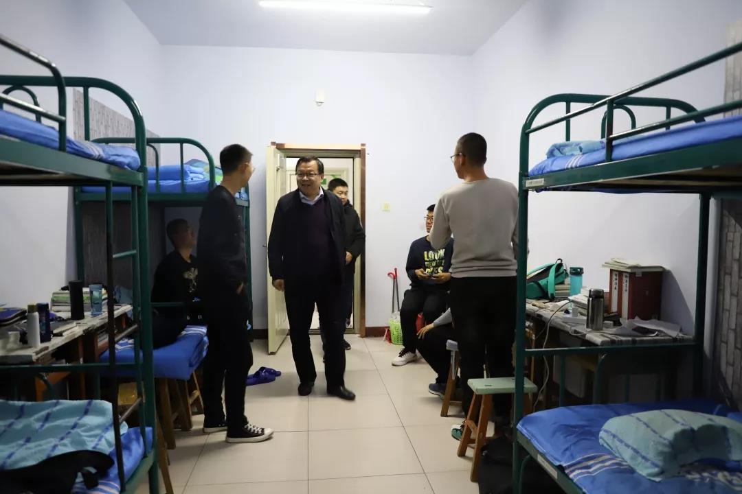 2019年11月4日,太阳成集团tyc122ccvip党总支书记扎其劳老师、院长刘官厅老师、党总支副书记、副院长季建光老师、副院长包霞老师、副院长李联合老师、学生辅导员李帅老师、刘沙沙老师来到学生宿舍进行安全卫生检查,亲切询问同学们生活、学习等情况。