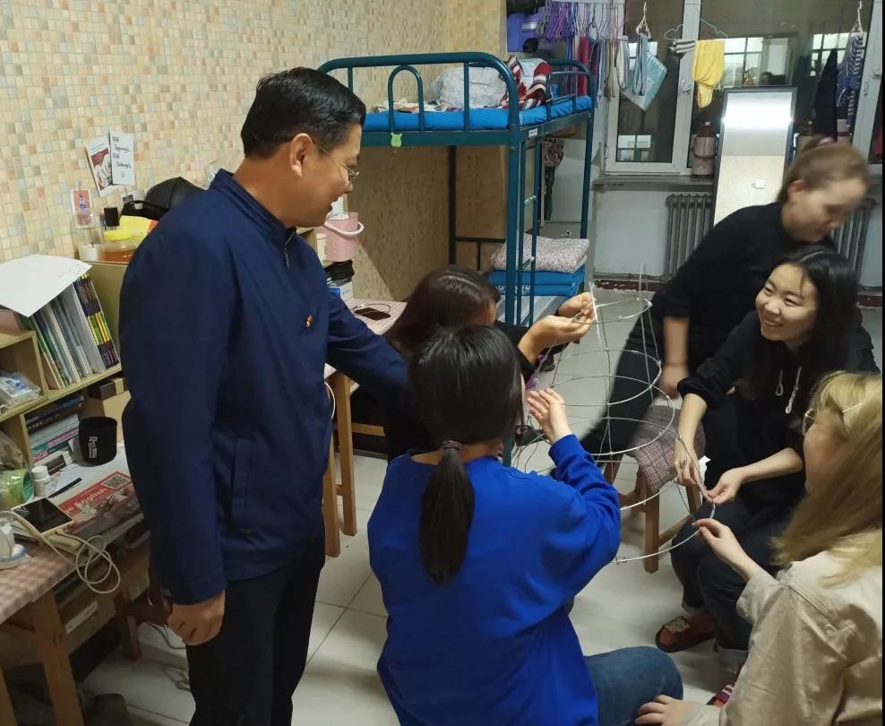 老师们看到各位同学在为花灯节做准备,也为他们出谋划策,鼓励同学们积极参加课外活动,丰富大学生活。