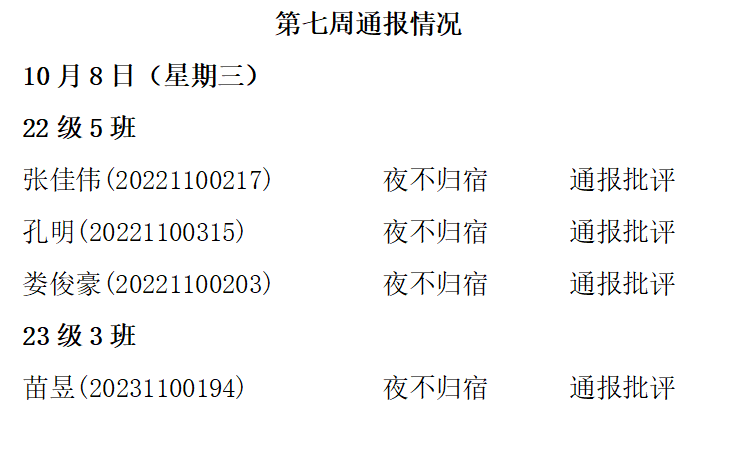 太阳成集团tyc122ccvip2025——2026年度第一学期第七周通报情况